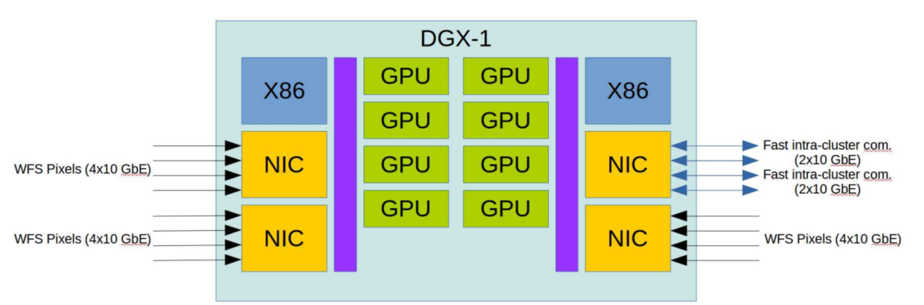 The primary objective of this axis of development is to prototype a cluster, able to reach a sustained performance of 1.5 TMAC/s of computing power and processing 250 Gb/s of streaming data with a maximum jitter of 100 µs over 1s of operation and using commodity accelerators such as GPUs as compute engines. (obj. 1.1)