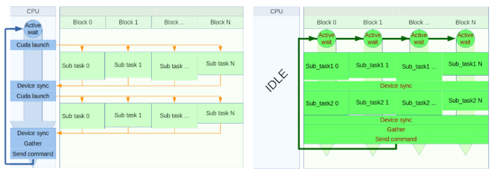 However the solution introduces a huge constraint in the implementation, it does not allow the use of any existing standard library. Added to this is the necessity to use the correct number of blocks and threads to use 100% of the GPU capacities in terms of maximum number of blocks and threads per block.